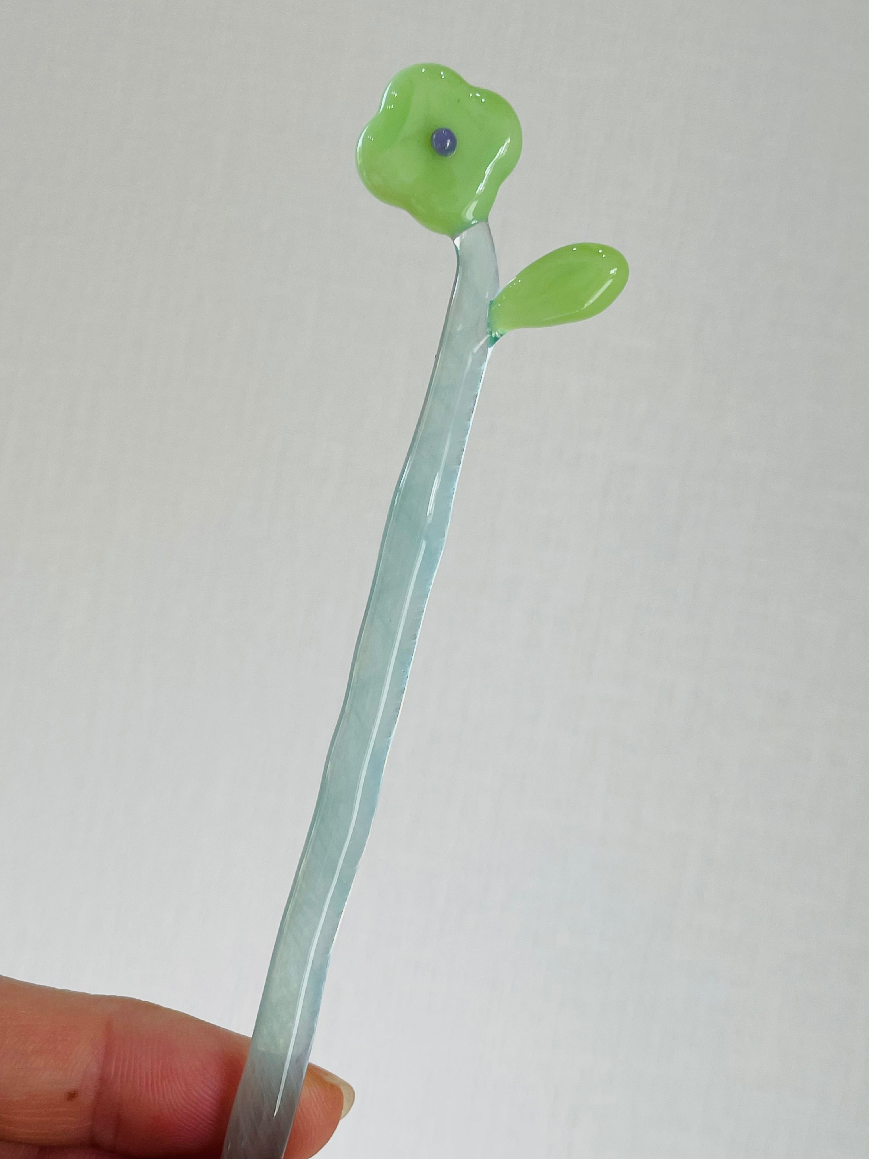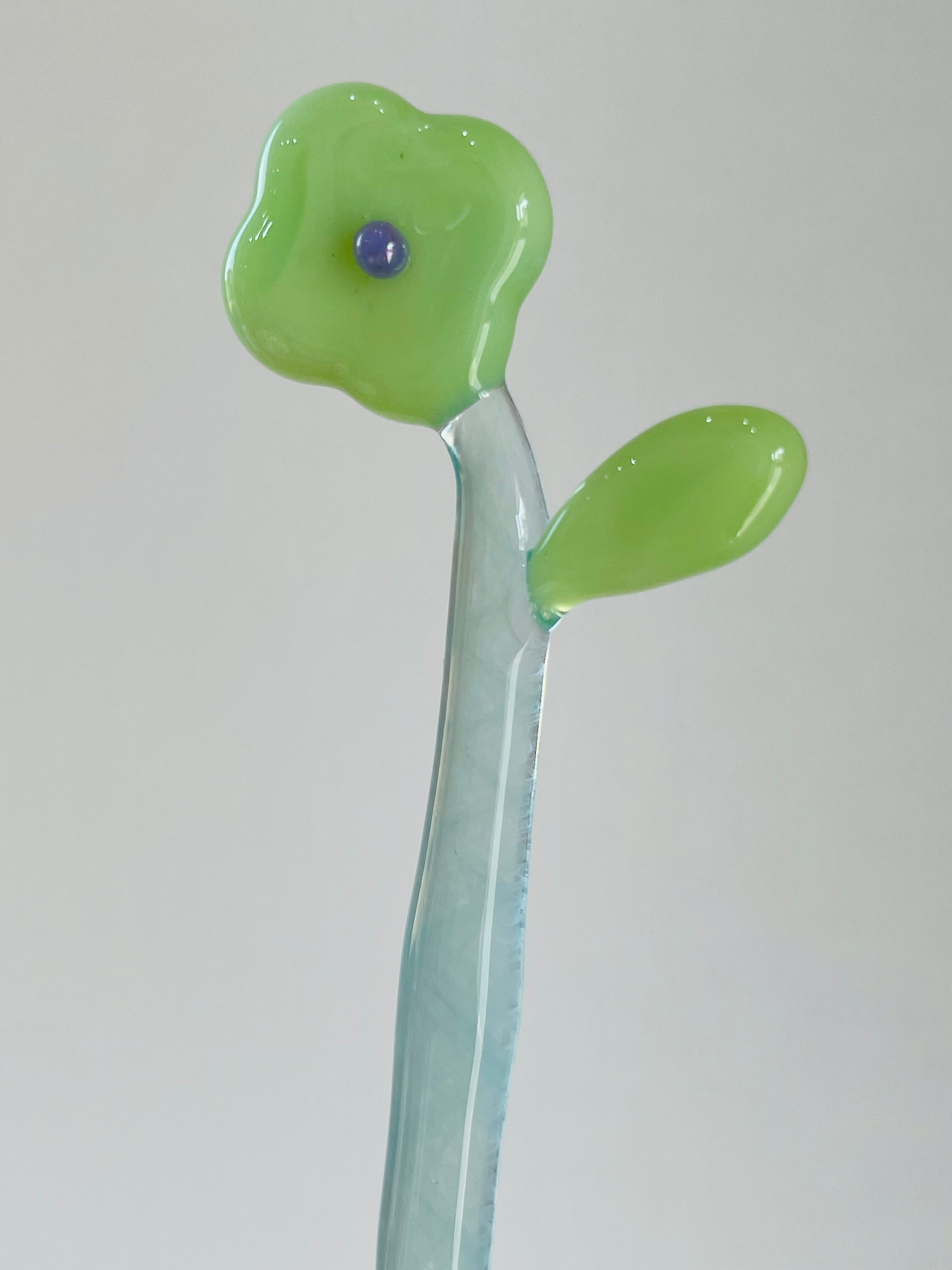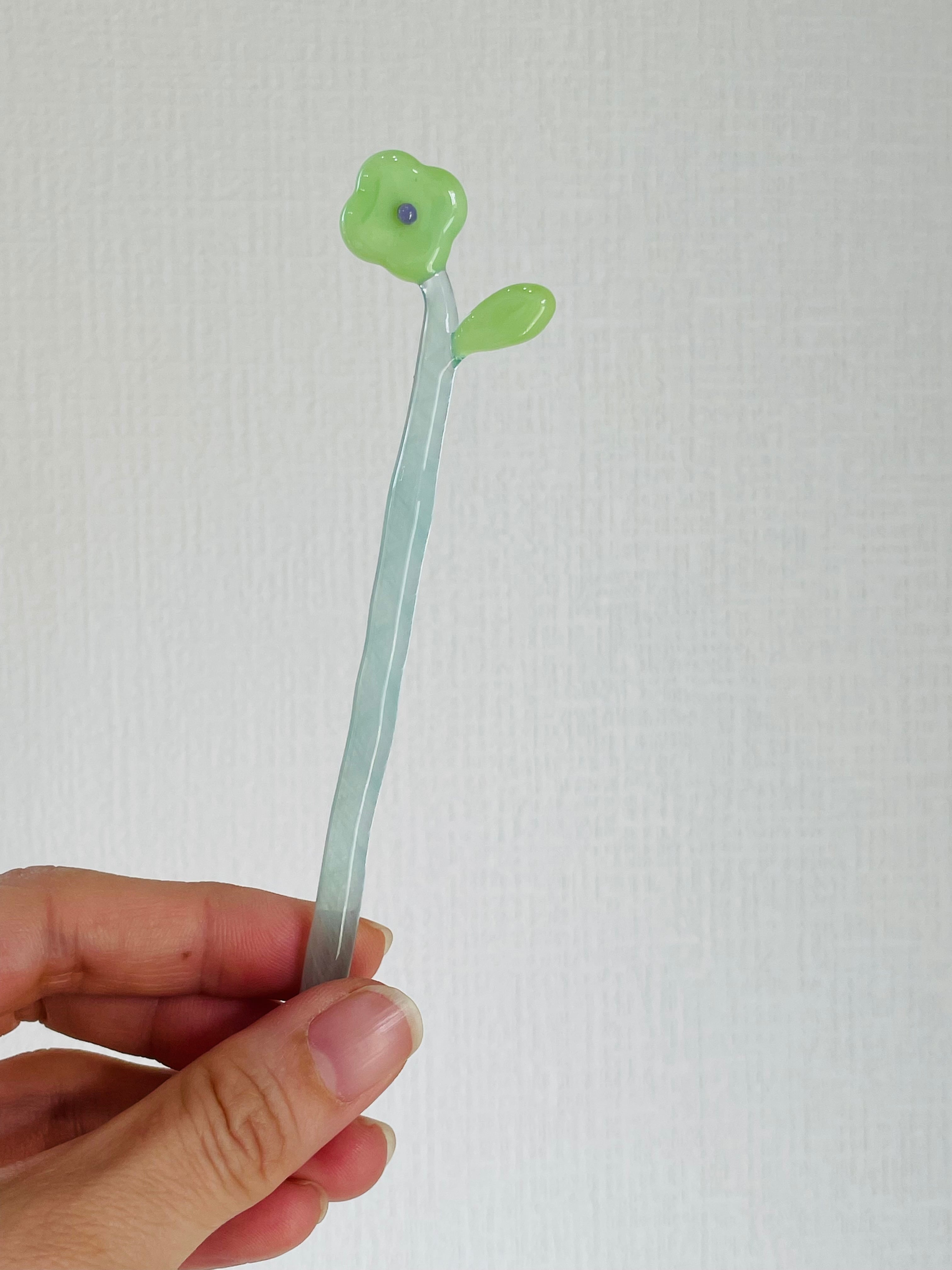 茎は少し透明感があるグリーン系でお花と同じグリーンの葉がちょこんとついています。