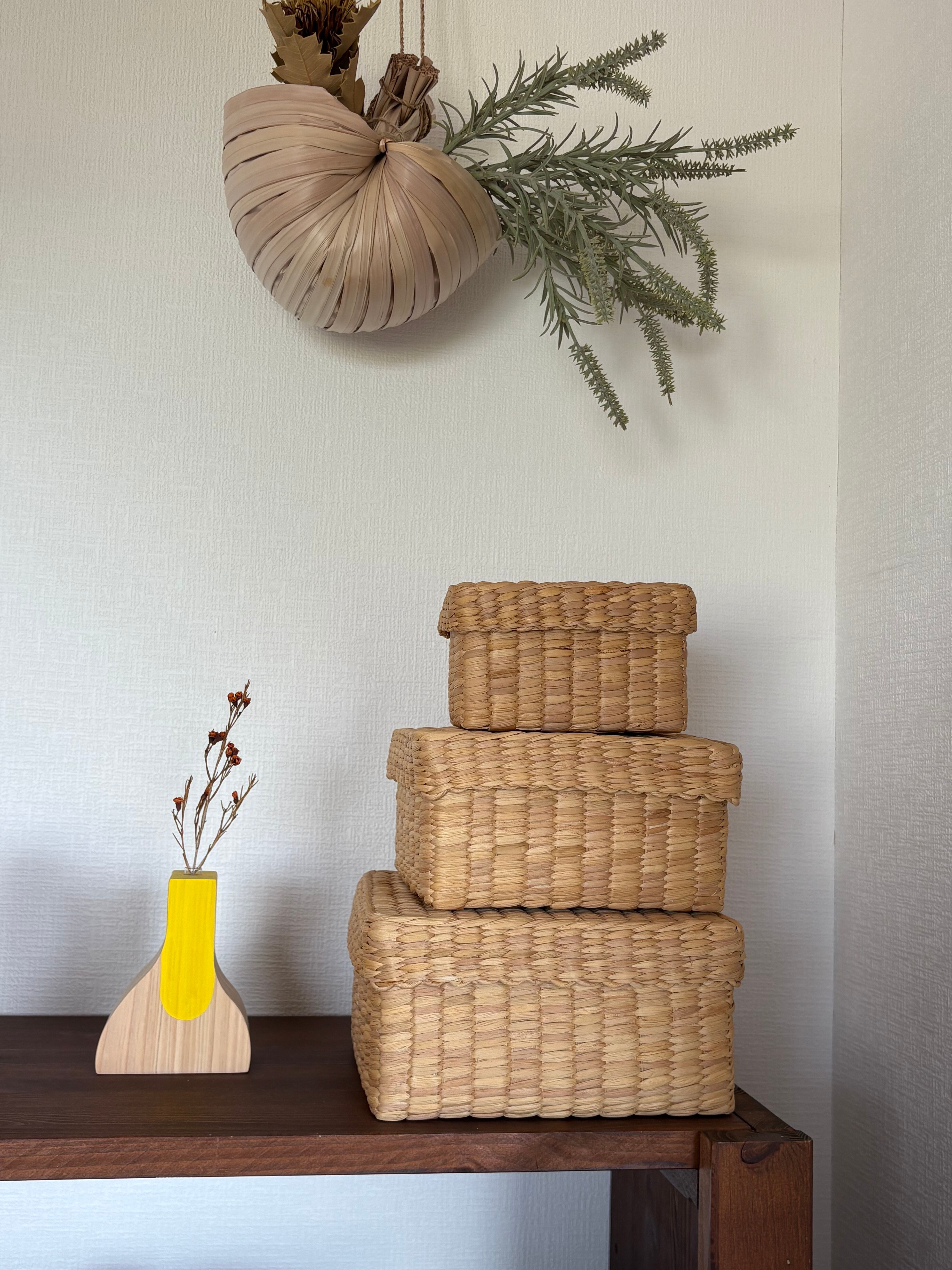素朴な風合いと手作りの温かさが魅力のウォーターヒヤシンス ふた付きBOXをぜひお楽しみください!