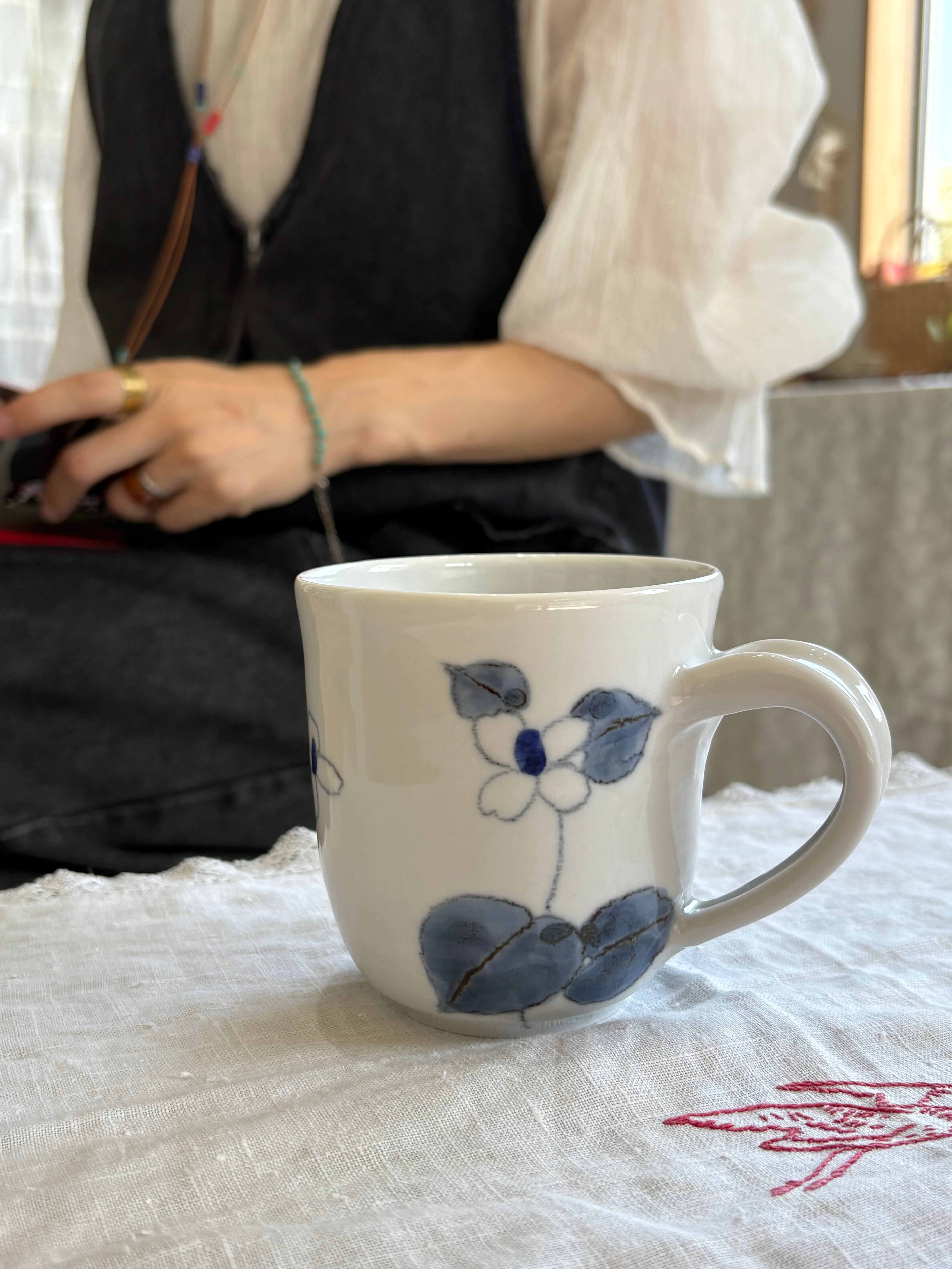 小長谷節子さんの繊細でやさしい十薬の絵柄のマグカップです。