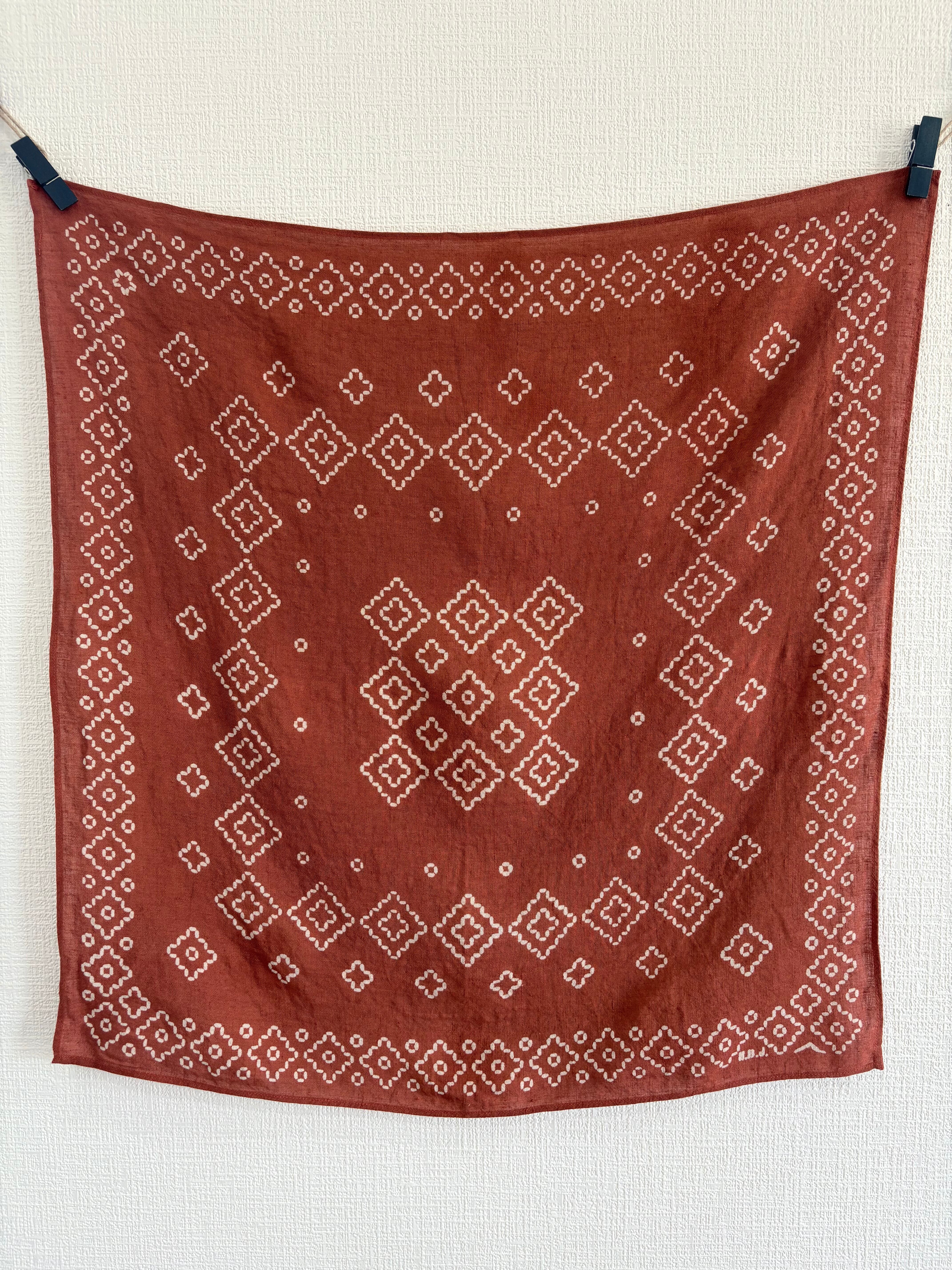 そのため模様にかすれや色が抜けきらないグラデーションがあったり、一枚一枚表情が違う味わい深いバンダナとなっています。