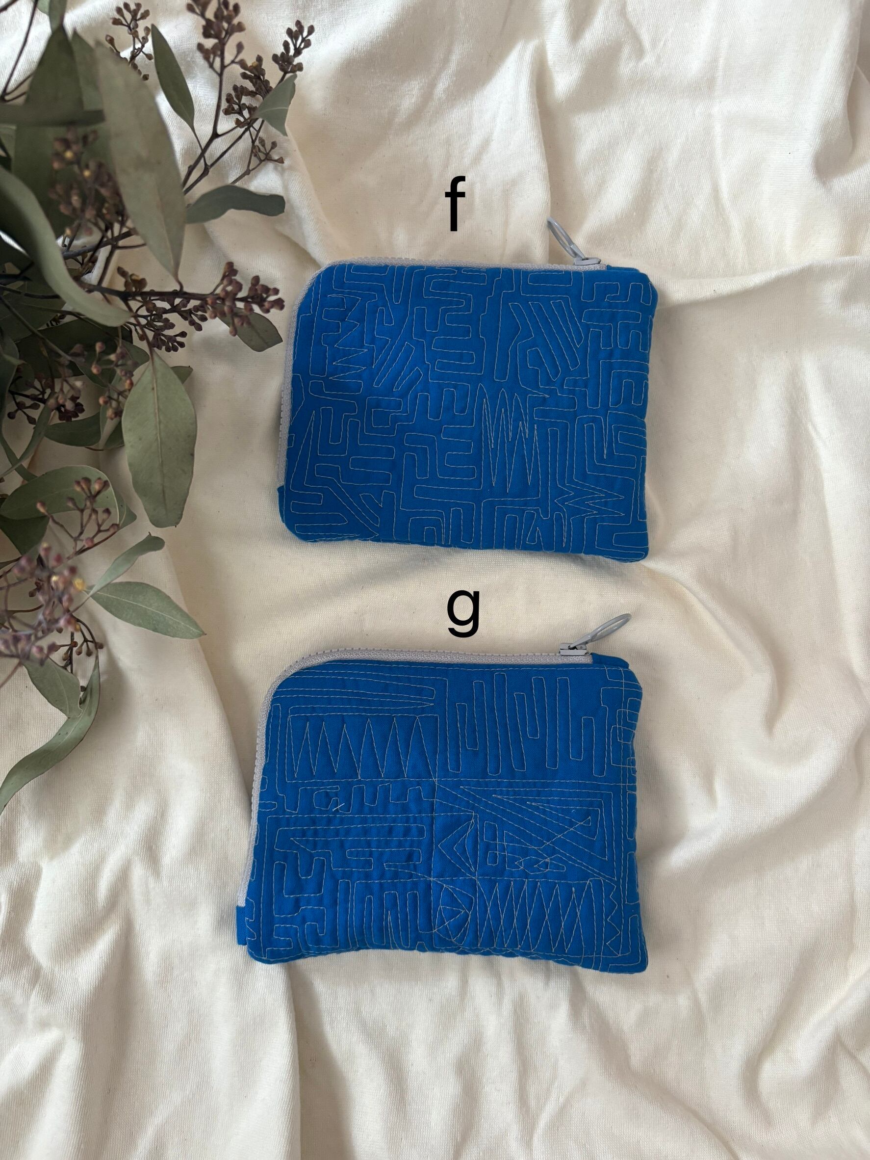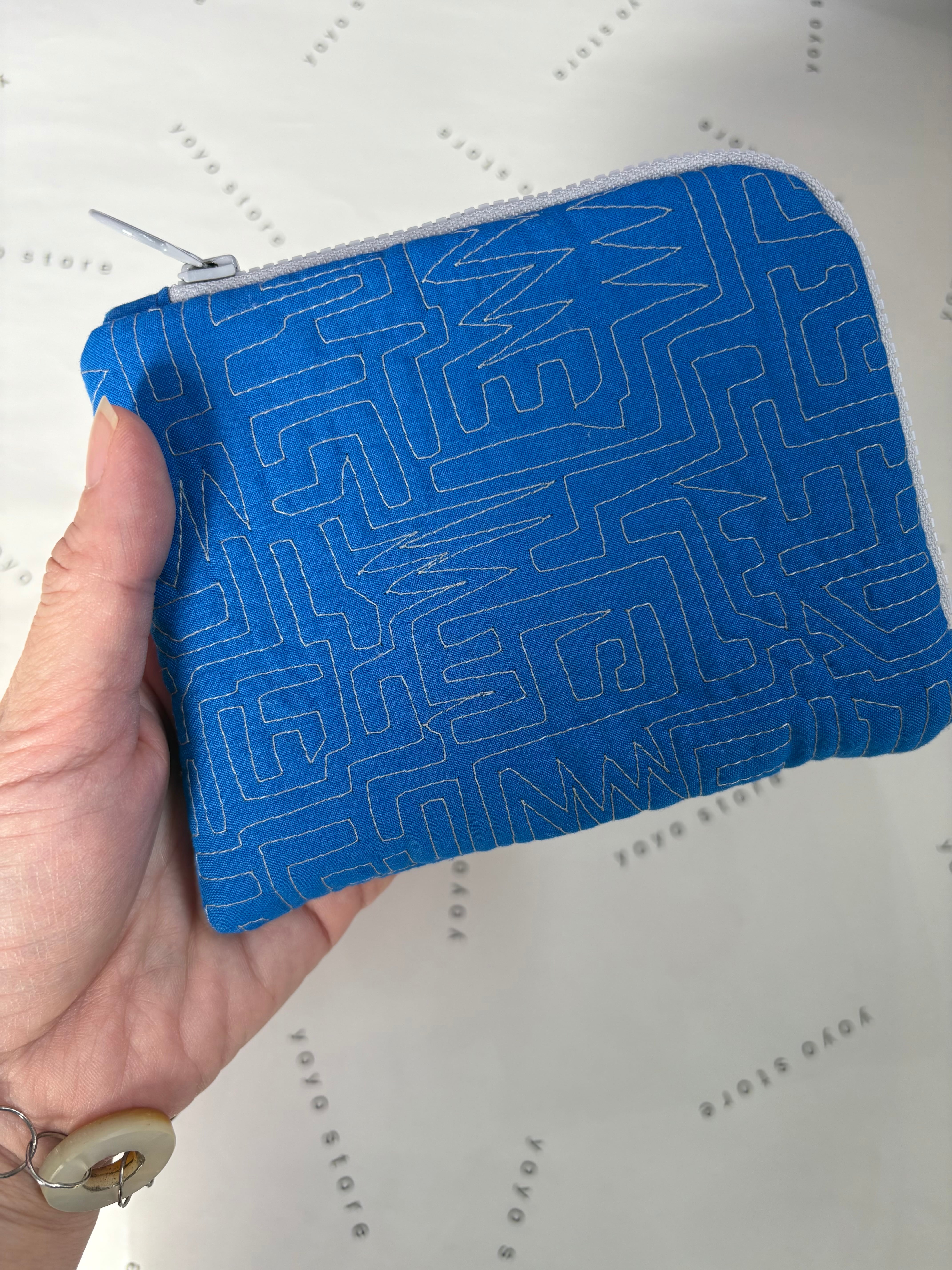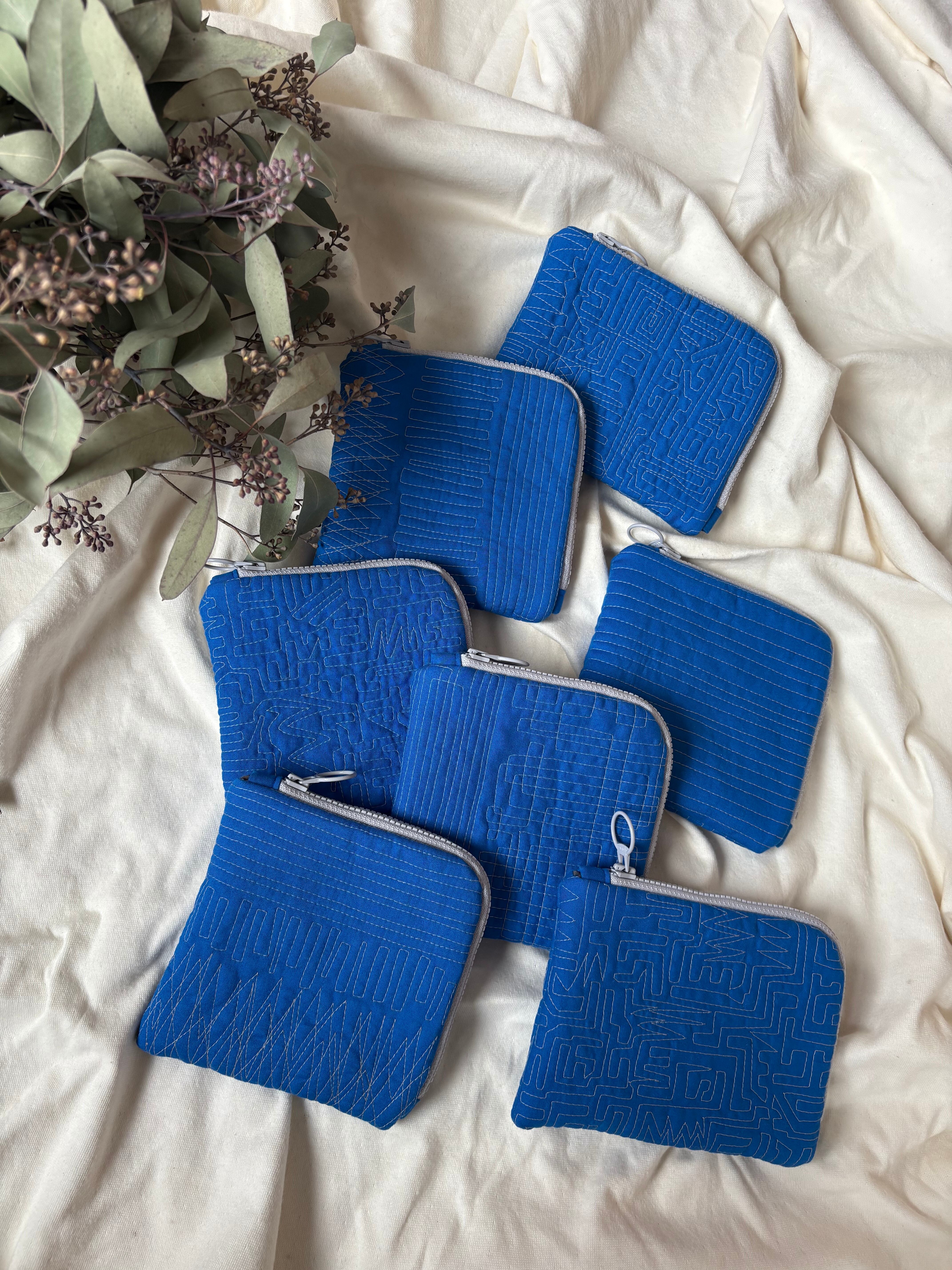 青い生地にグレーの糸でステッチを施し、オリジナルのキルティングを作っているため、1つ1つ模様が違います。