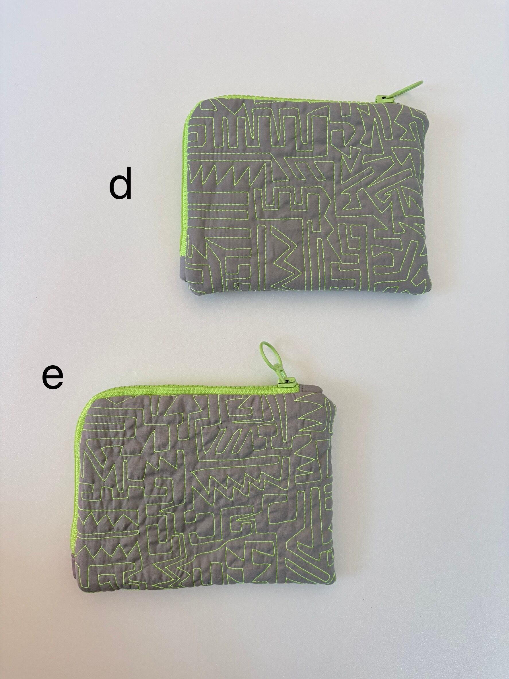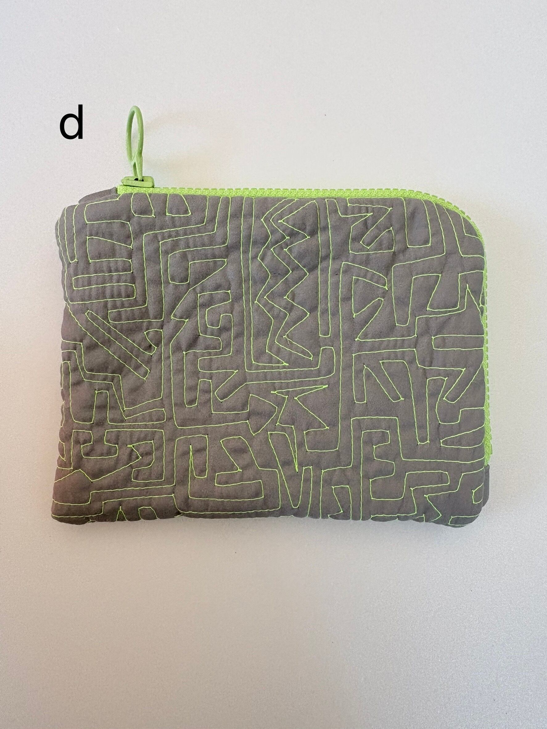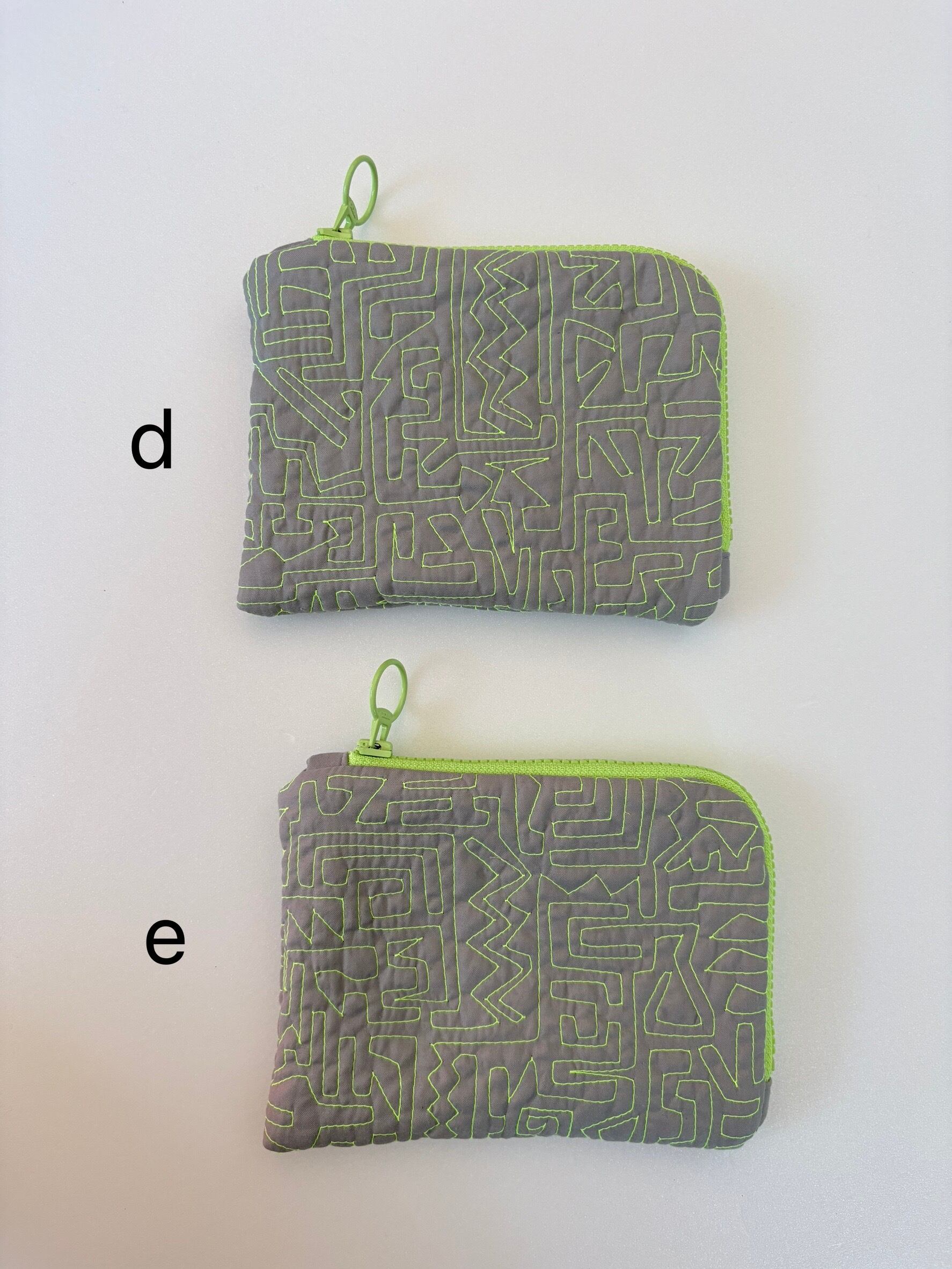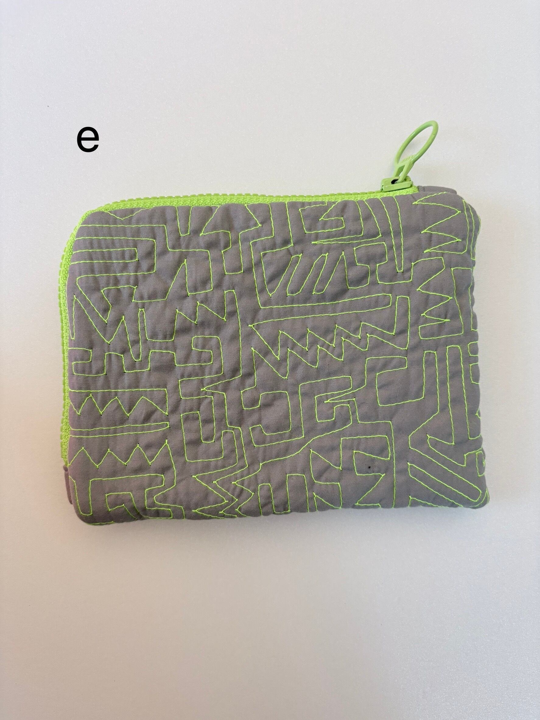 グレーの生地にネオンイエローの糸でステッチを施し、オリジナルのキルティングを作っているため、1つ1つ模様が違います。