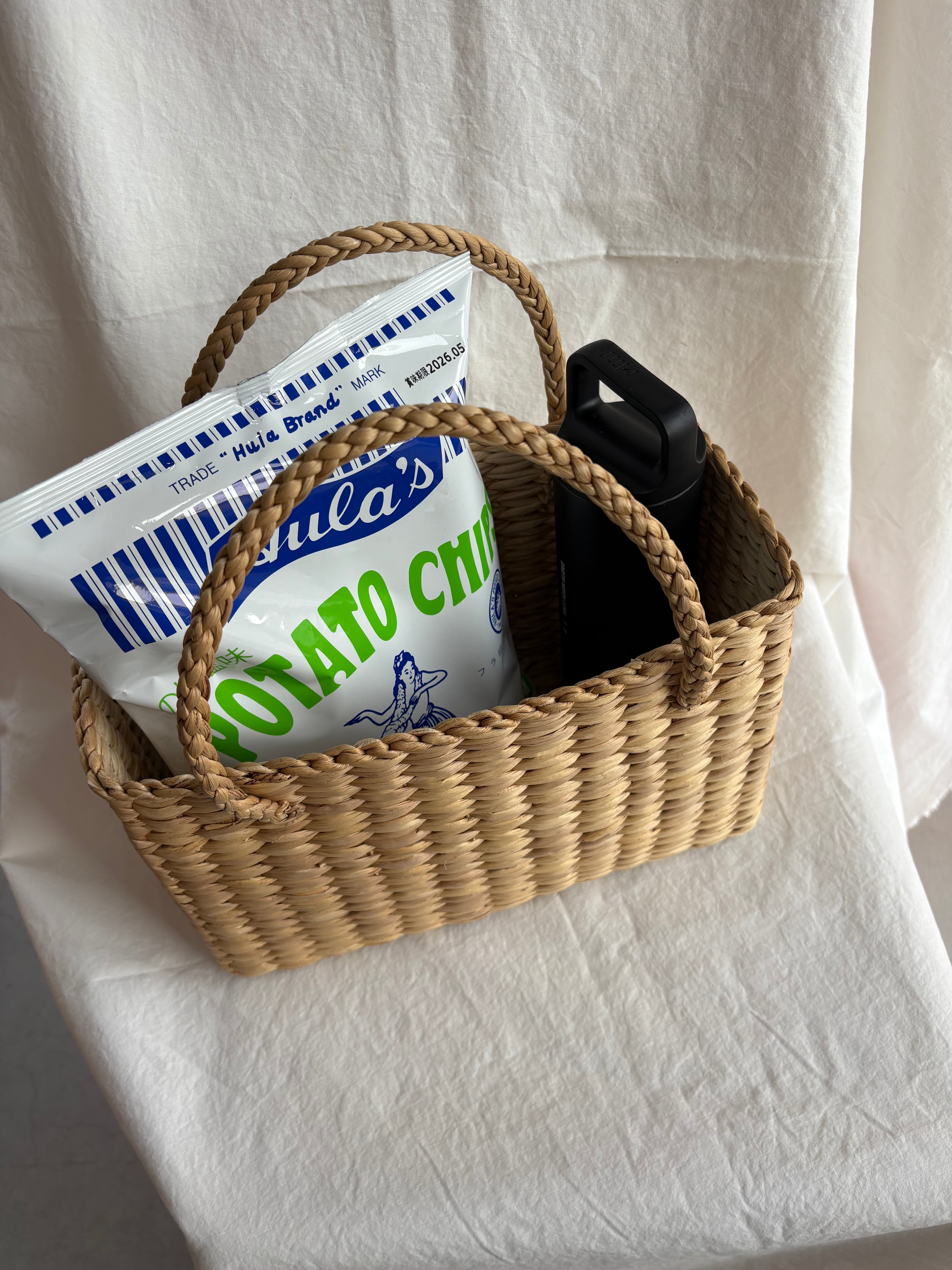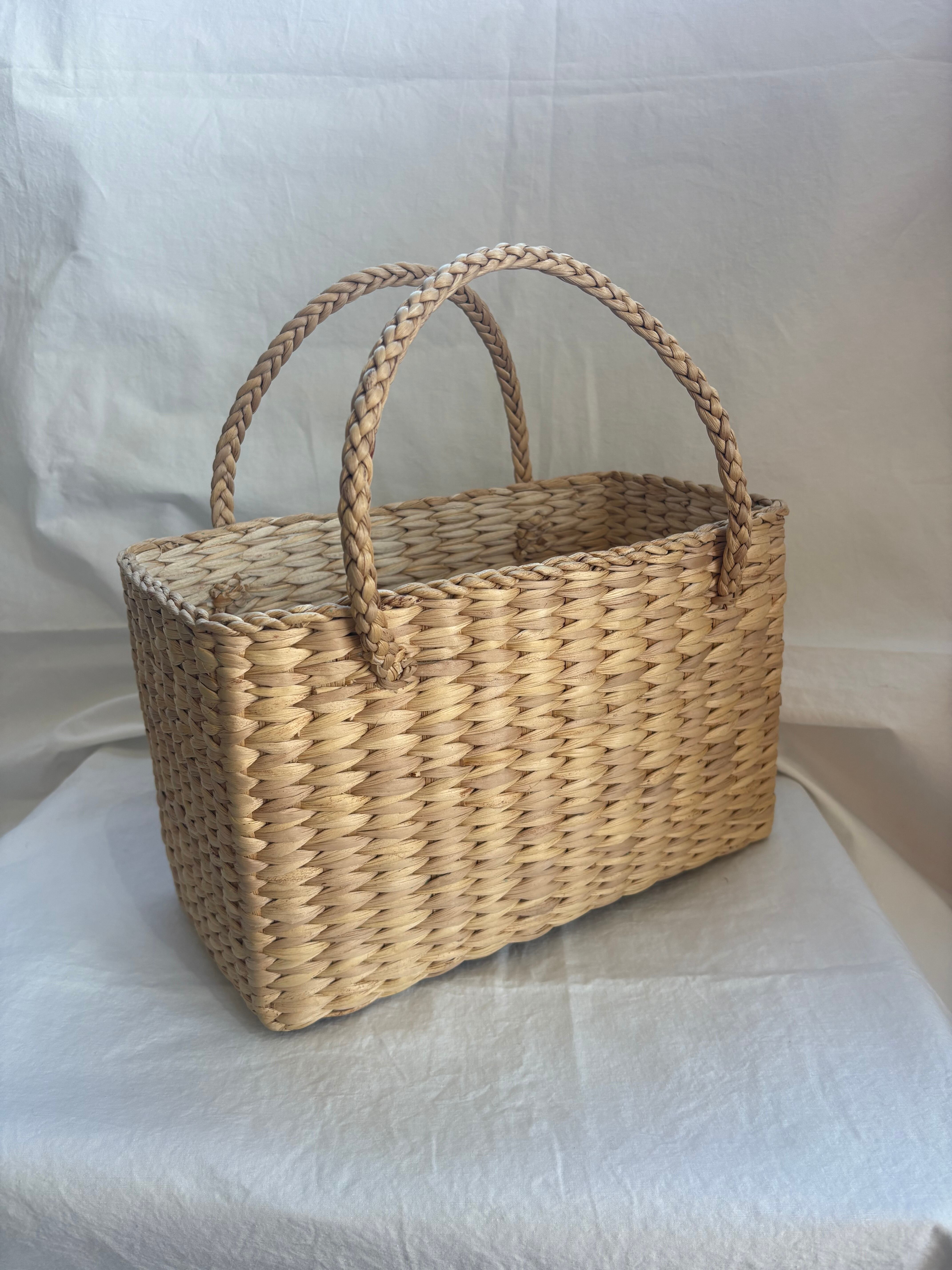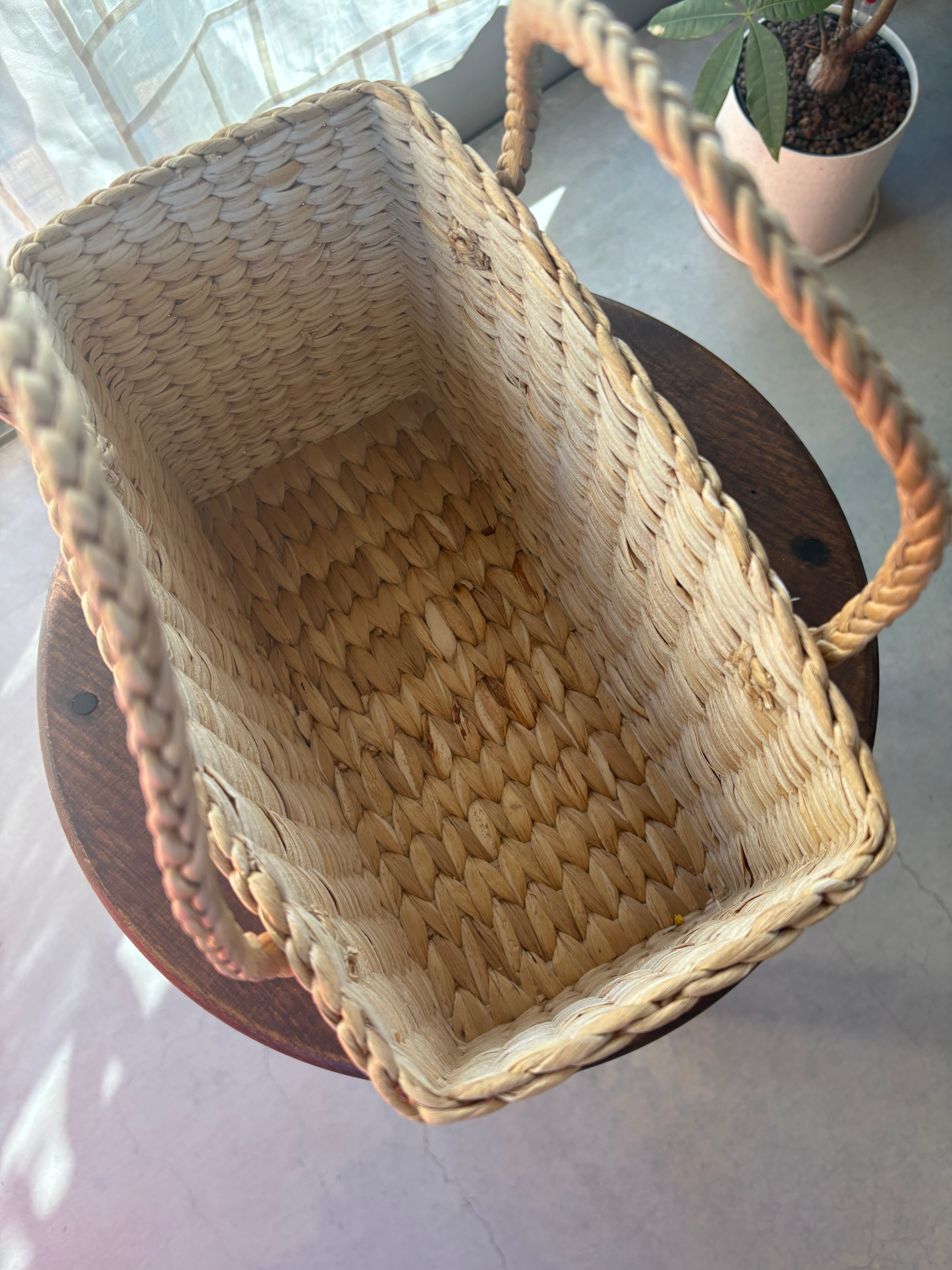 タイの自然素材、ウォーターヒヤシンスを使用したカゴバッグです。軽くて丈夫な特性を持ちながら、職人の手によってひとつひとつ丁寧に編まれています。ナチュラルで温かみのある仕上がりで、四角の形がかわいらしく、カジュアルにもリゾートにも。