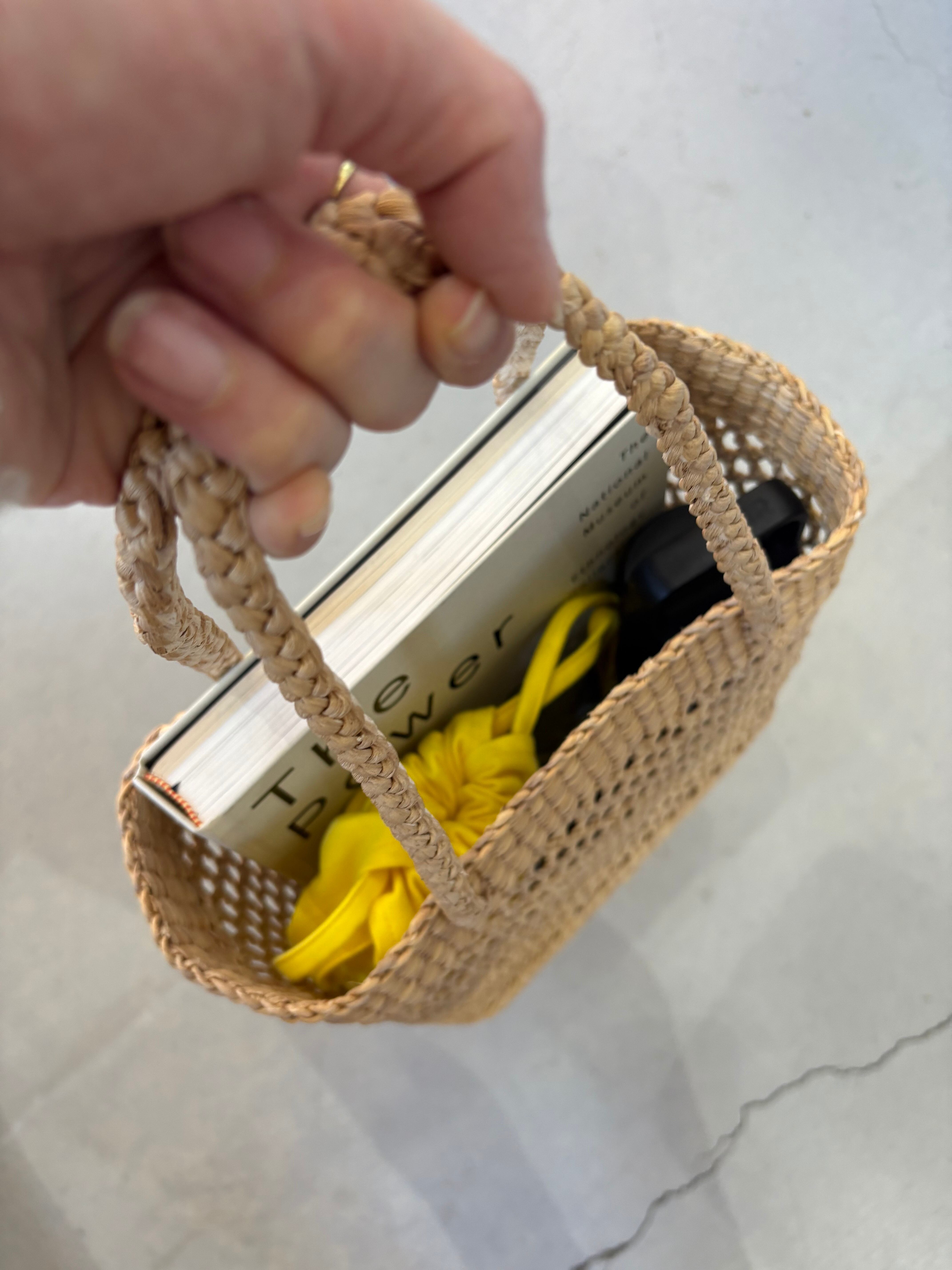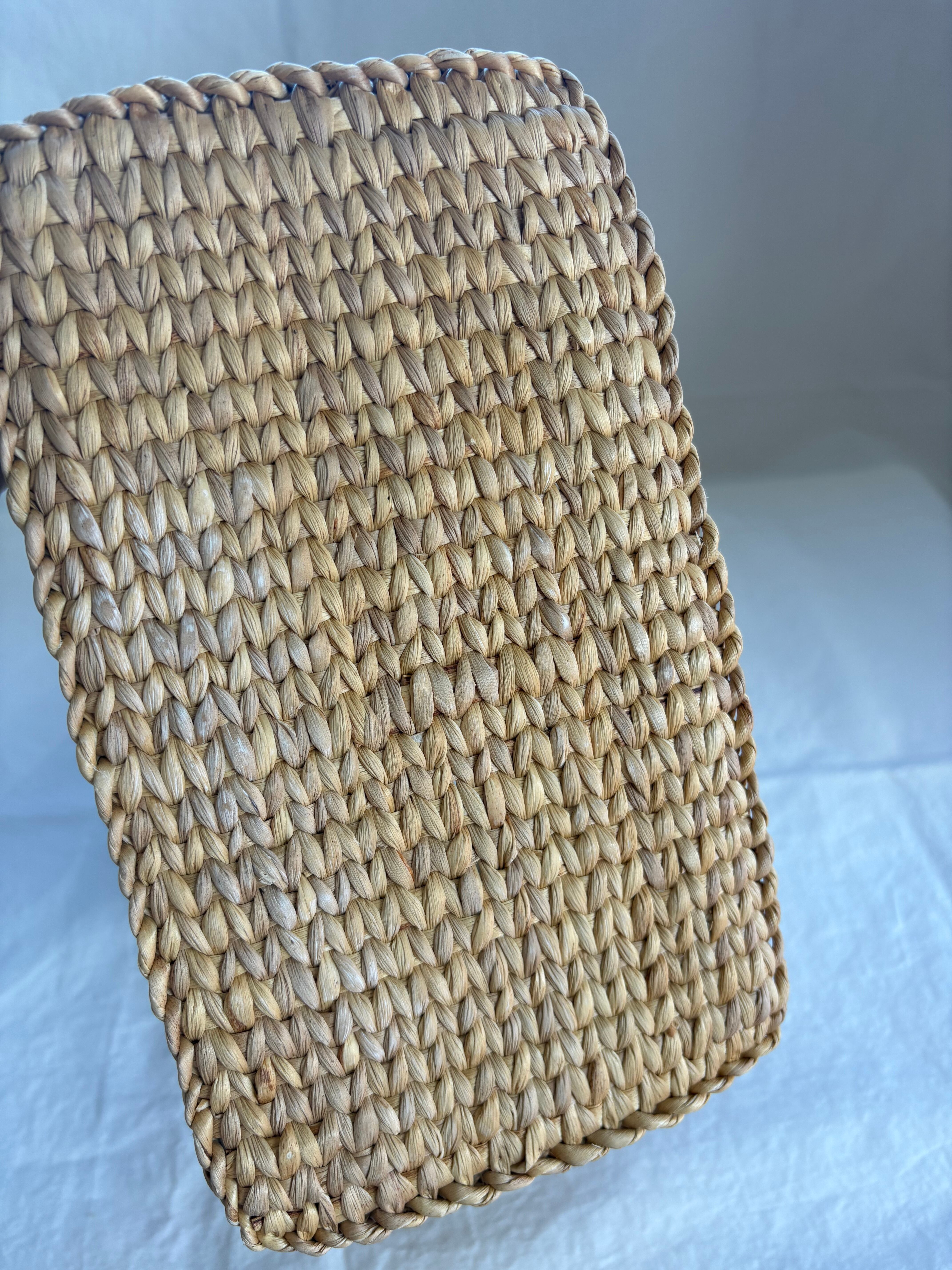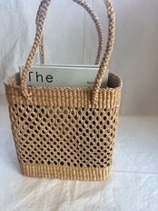 タイの自然素材、ウォーターヒヤシンスを使用したカゴバッグです。軽くて丈夫な特性を持ちながら、職人の手によってひとつひとつ丁寧に編まれています。ナチュラルで温かみのある仕上がりで、繊細な編み目模様を丁寧に施された四角いカゴバッグです。