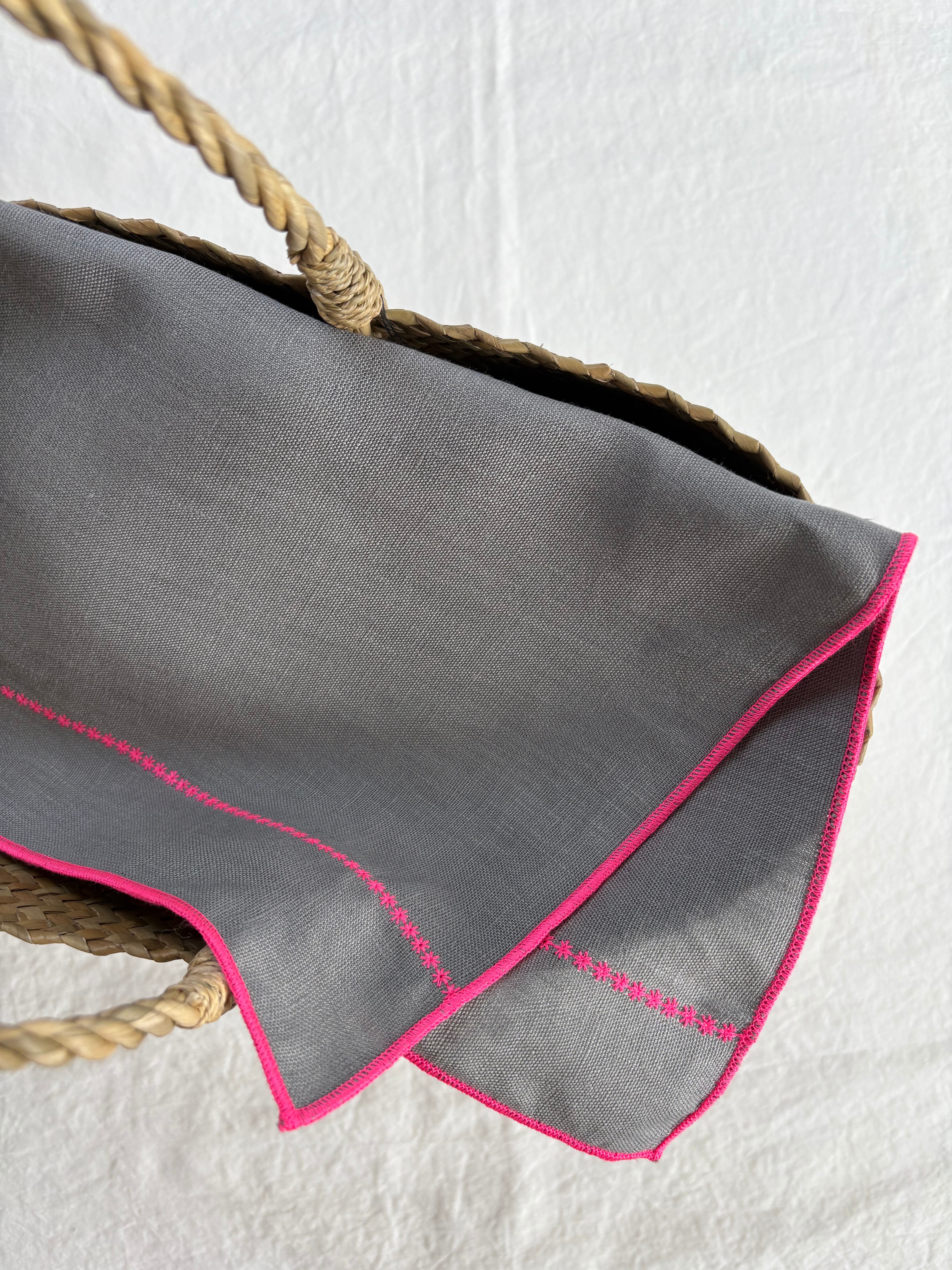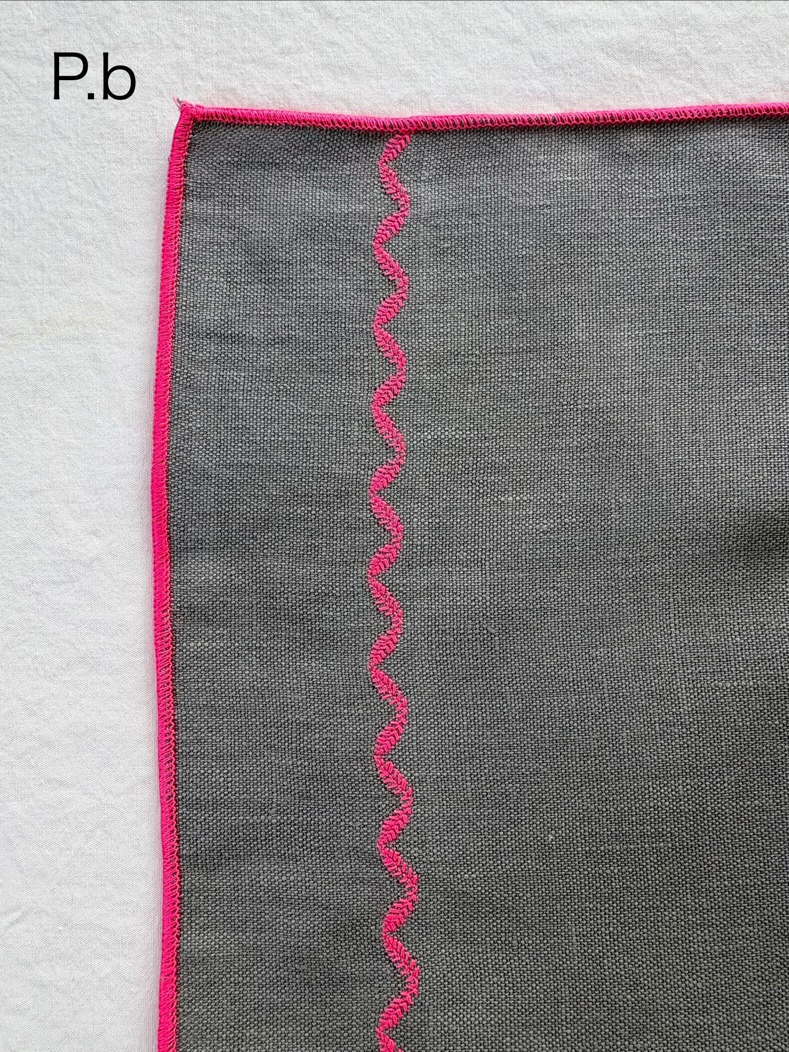 リネンハンカチ【ピンクステッチ】